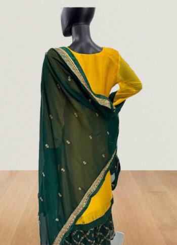 An elegant grey and pink chiffon shalwar kamiz set featuring delicate embroidery and detailed handwork. Paired with a matching dupatta, this refined ensemble is perfect for festive and formal occasions.