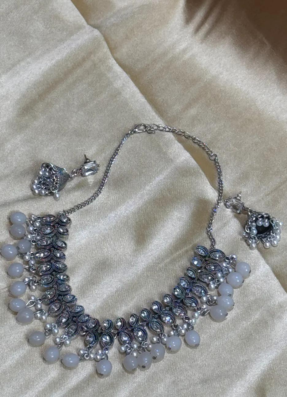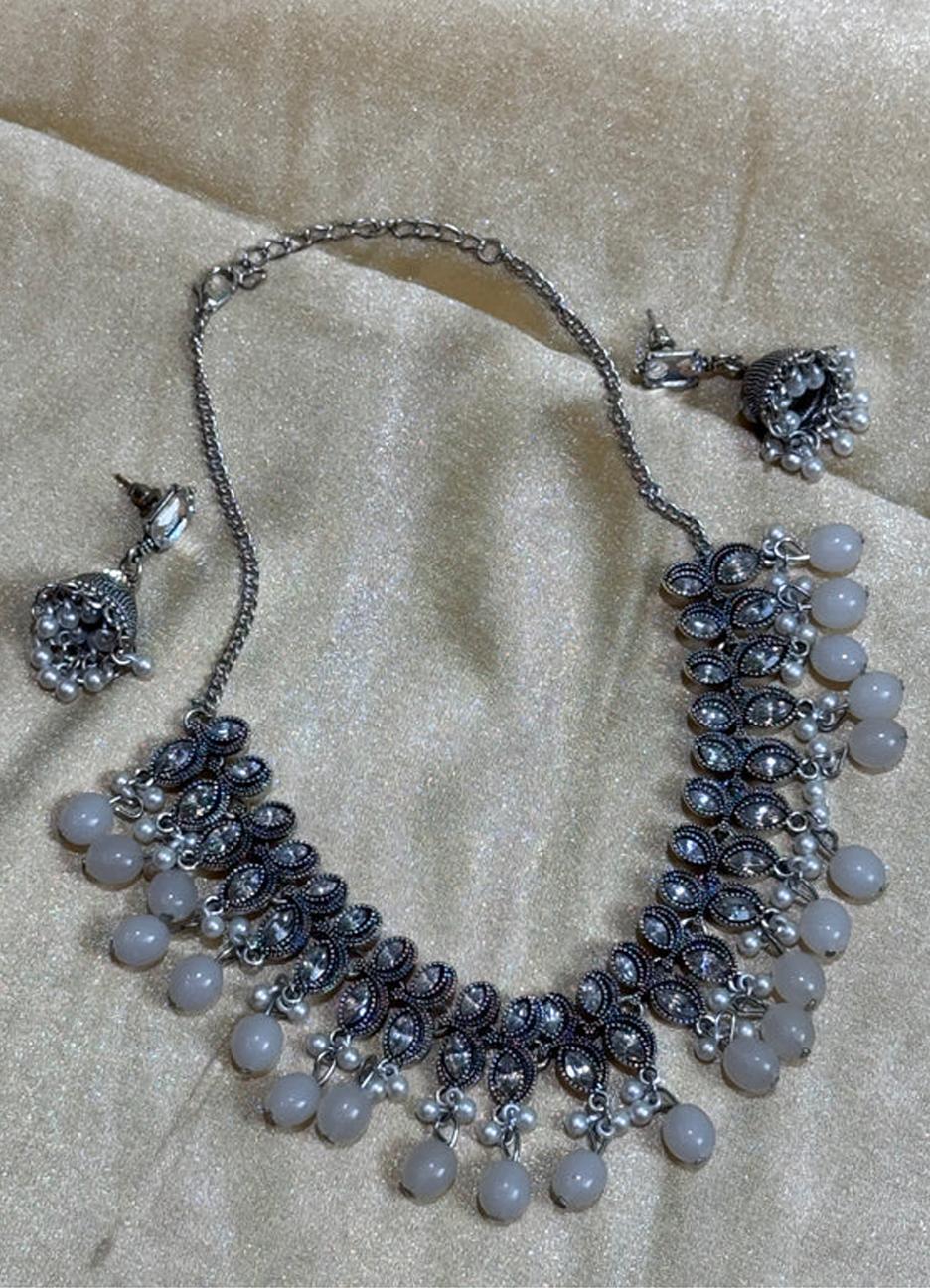 German Silver Necklace with Pearls & Stone Work