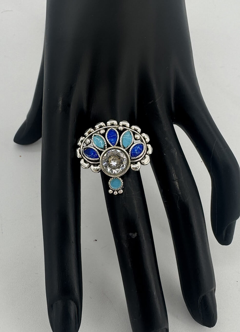 Premium handmade Theo silver jewelry featuring sparkling zirconia stones and vibrant enamel detailing with an elegant oxidized antique finish.