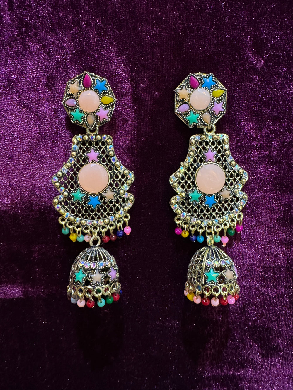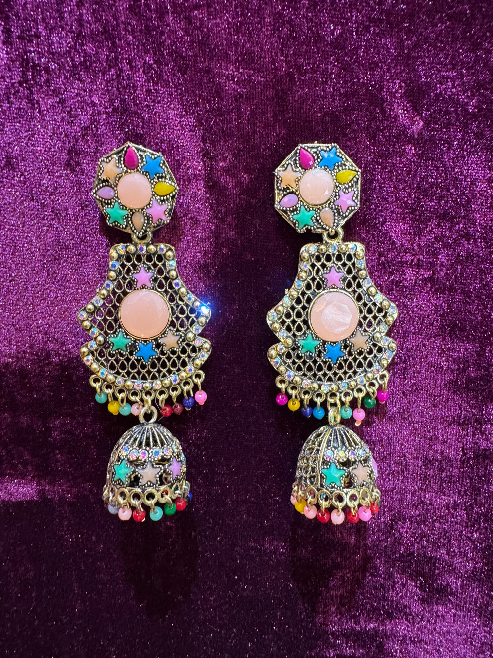 Features: Traditional Jhumka Design, Lightweight, Colorful Sparkle