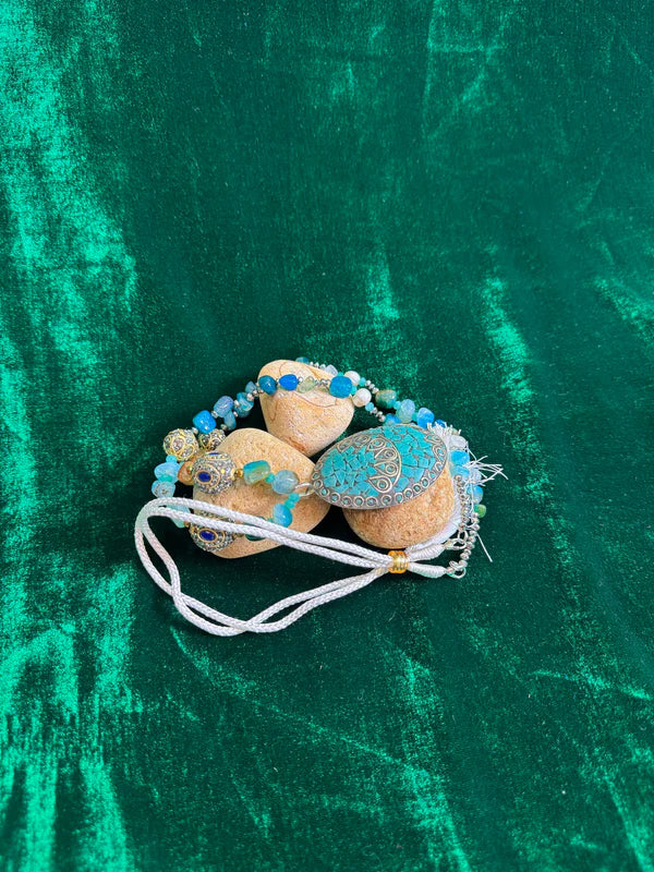 Inspired by the calm of the sea and the beauty of nature, this handcrafted German silver bracelet features stunning turquoise beads woven with intricate detail. A perfect blend of tradition and modern style, it brings elegance and serenity to every outfit.